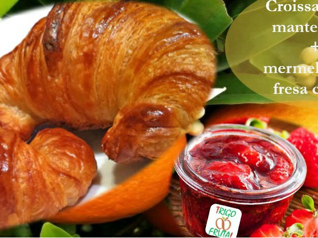 Croissant artesanal con mantequilla y mermelada de fresa casera (hecha por trigo frutal).