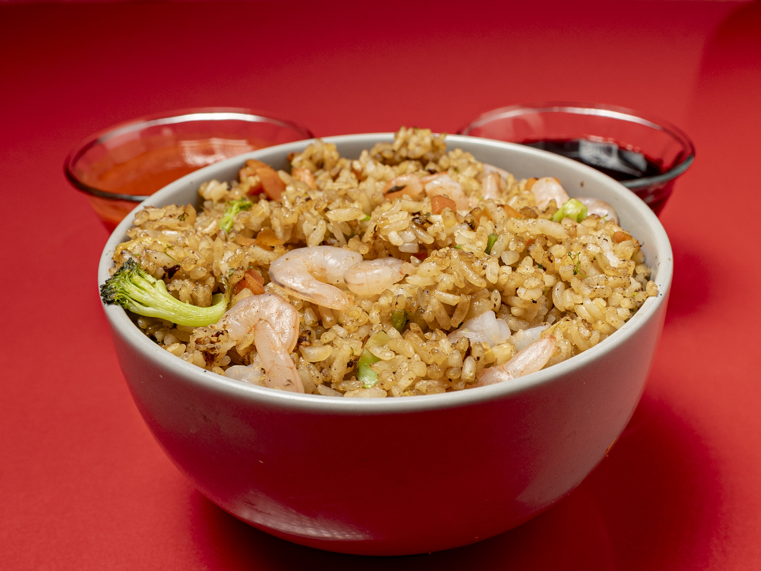 Arroz frito con verdura, pollo, carne y camarón.