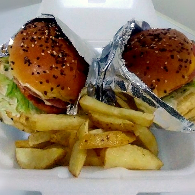 2 Deliciosas hamburguesas acompañadas de papas a la francesa.