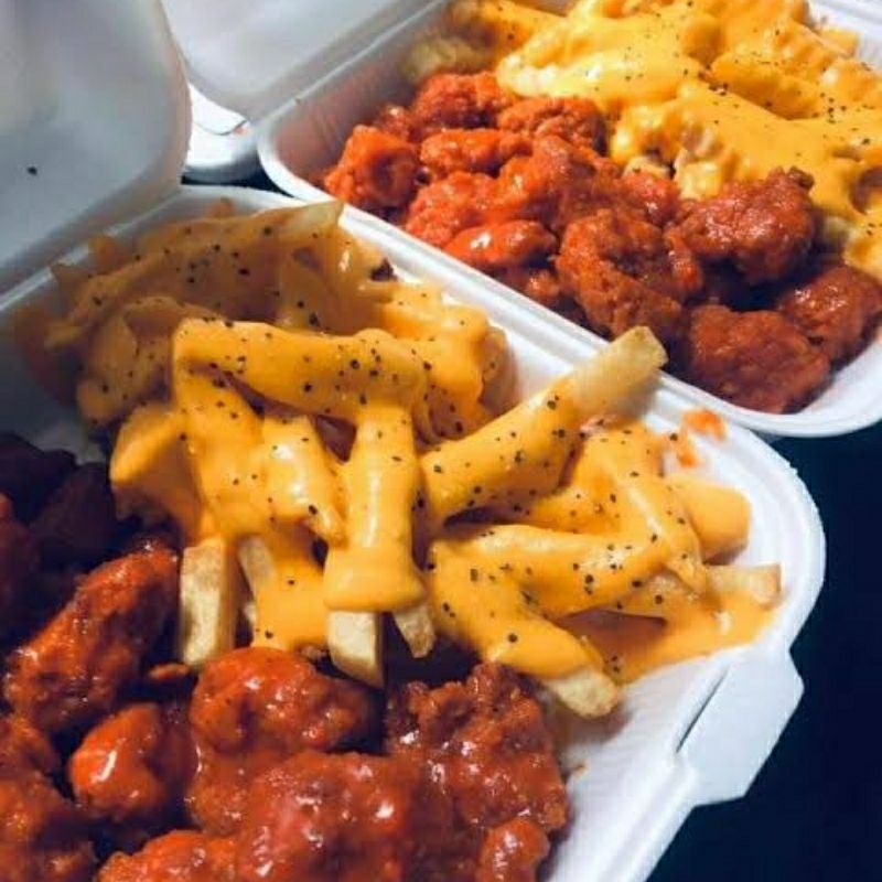 6 Trozos de boneless bañados en tu salsa favorita, acompañados de papas cheese con tocino, perfecta combinación.