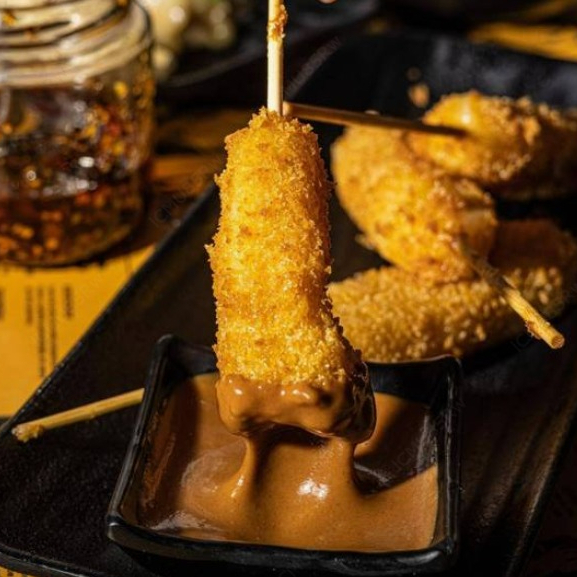 4 Piezas. Brochetas empanizadas, acompañadas de salsa tonkatsu.