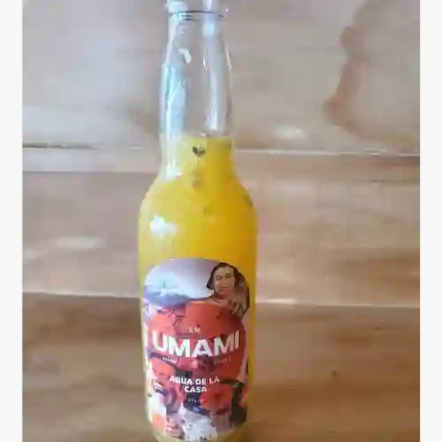 Bebida de la casa preparada con maracuya, naranja gengibre fresco y miel de agave.