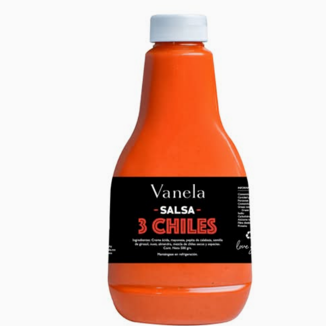 Crema ácida, mayonesa, mezcla de chiles secos y especias.