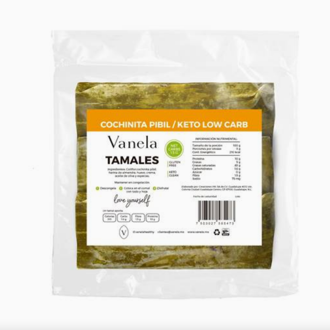 Coliflor, cochinita pibil, harina de almendra, huevo, crema, aceite de oliva y especias.