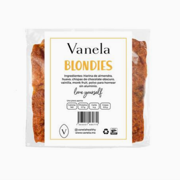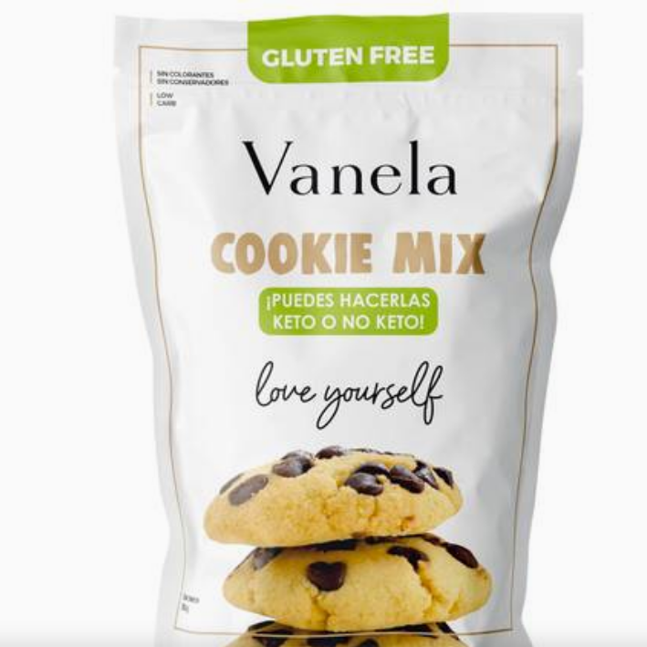 Harina de almendra, huevo, chispas de chocolate oscuro, vainilla, monk fruit y polvo para hornear sin aluminio.