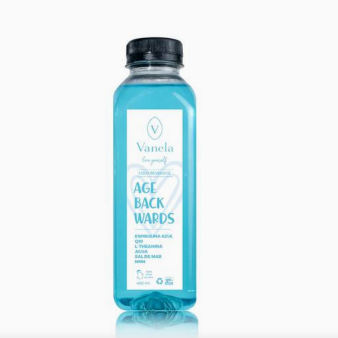Espirulina azul, q10, l-theanina, agua, sal de mar y nmn.