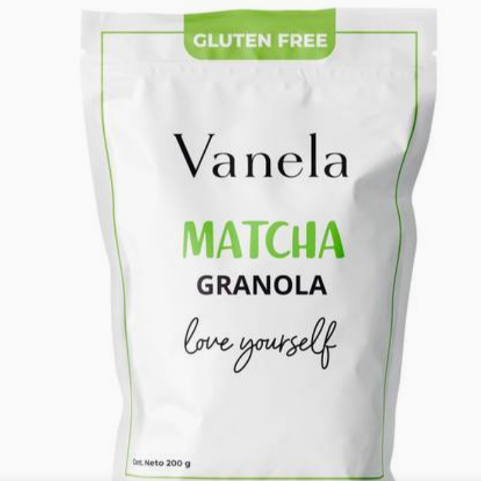 Hojuelas de avena sin gluten orgánica, nuez de castilla, nuez pecana, amaranto, almendra, pepita de calabaza, linaza, coco orgánico rallado, matcha orgánica, extracto de monk fruit y miel de maple orgánica.