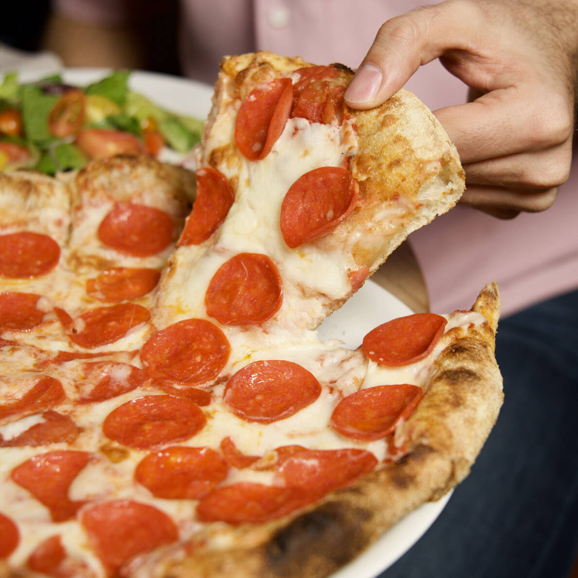 Salsa pomodoro, mozzarella y pepperoni.