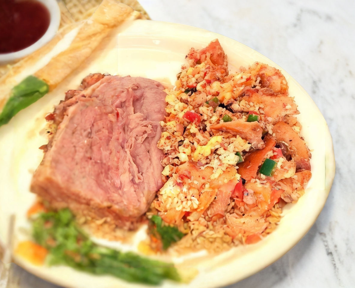 Deliciosa Carne de res 100% casera, trocitos de piña, jamón, queso chihuahua, aguacate, lechuga y jitomate