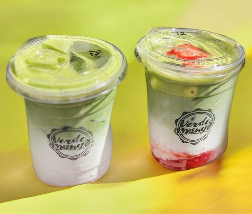 Te matcha, fresa, vainilla, leche y hielo