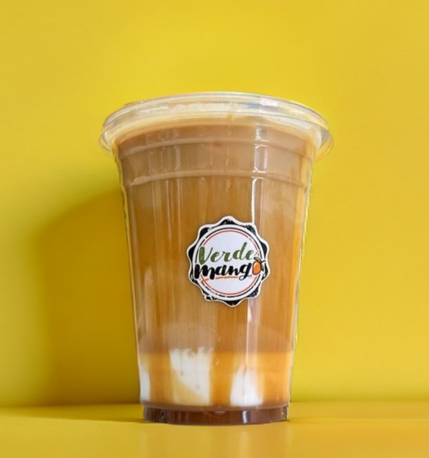 Doble shot de espresso, caramelo, vainilla, leche y hielo