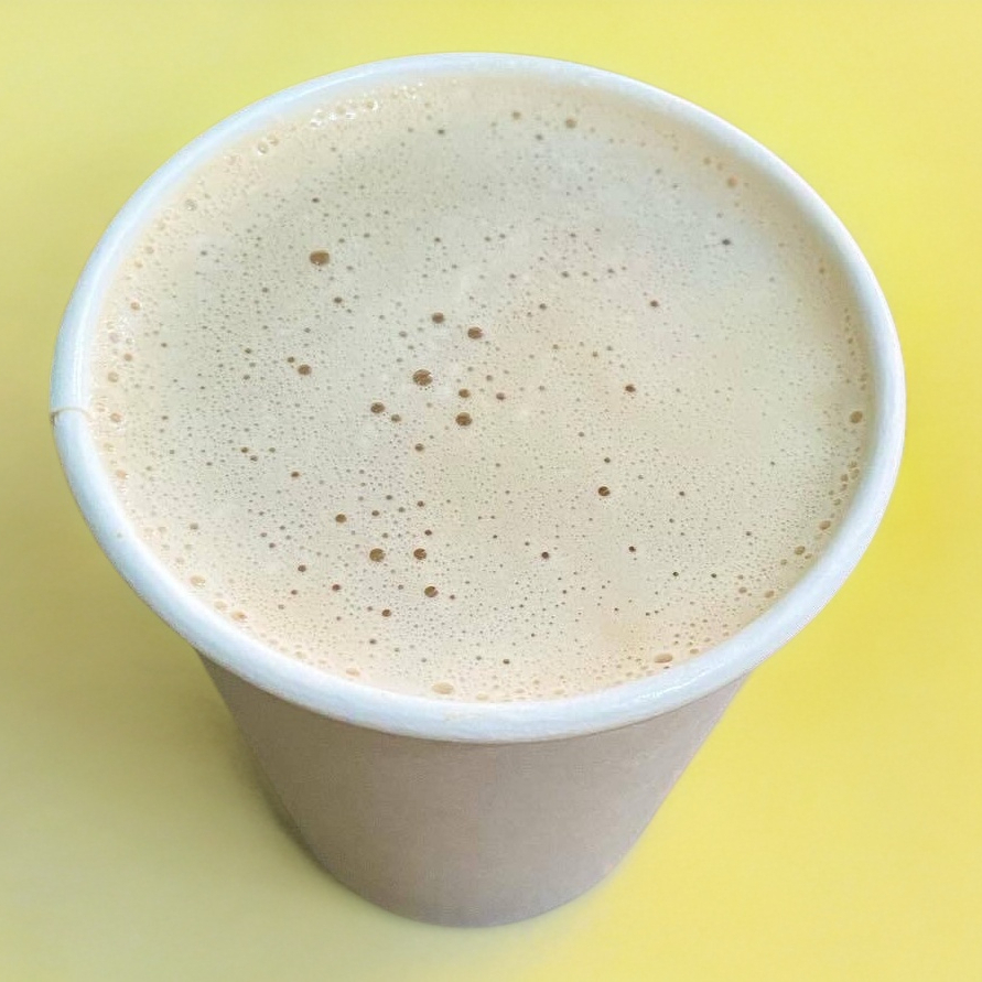 Doble shot de espresso, caramelo, vainilla, leche