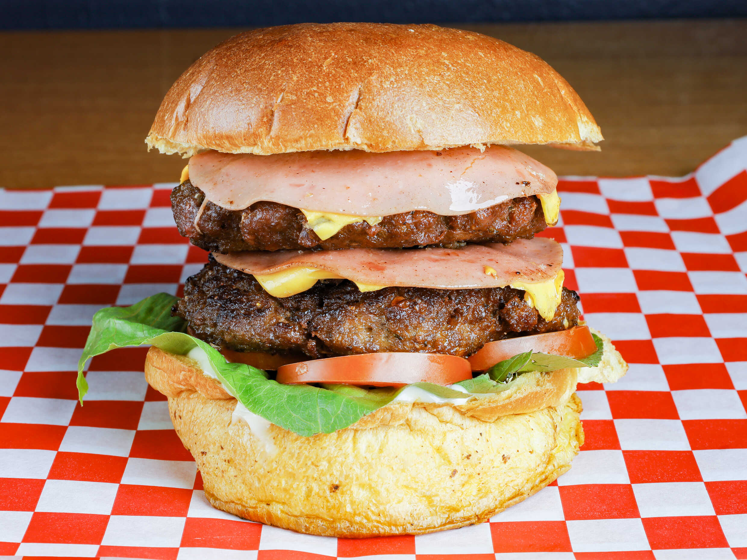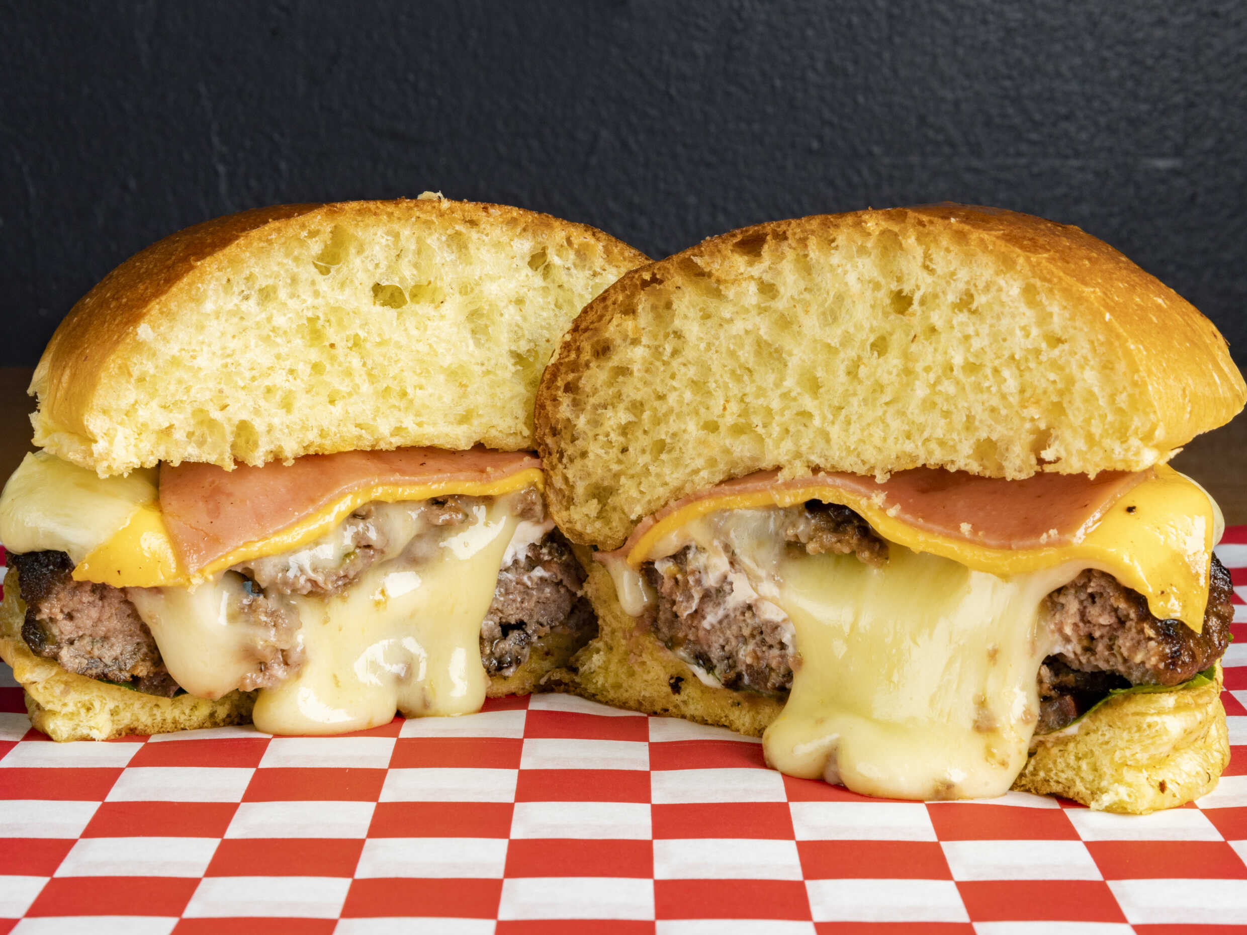 Dos carnes de 200 gr cada una, gratinadas con doble queso y con doble jamón.