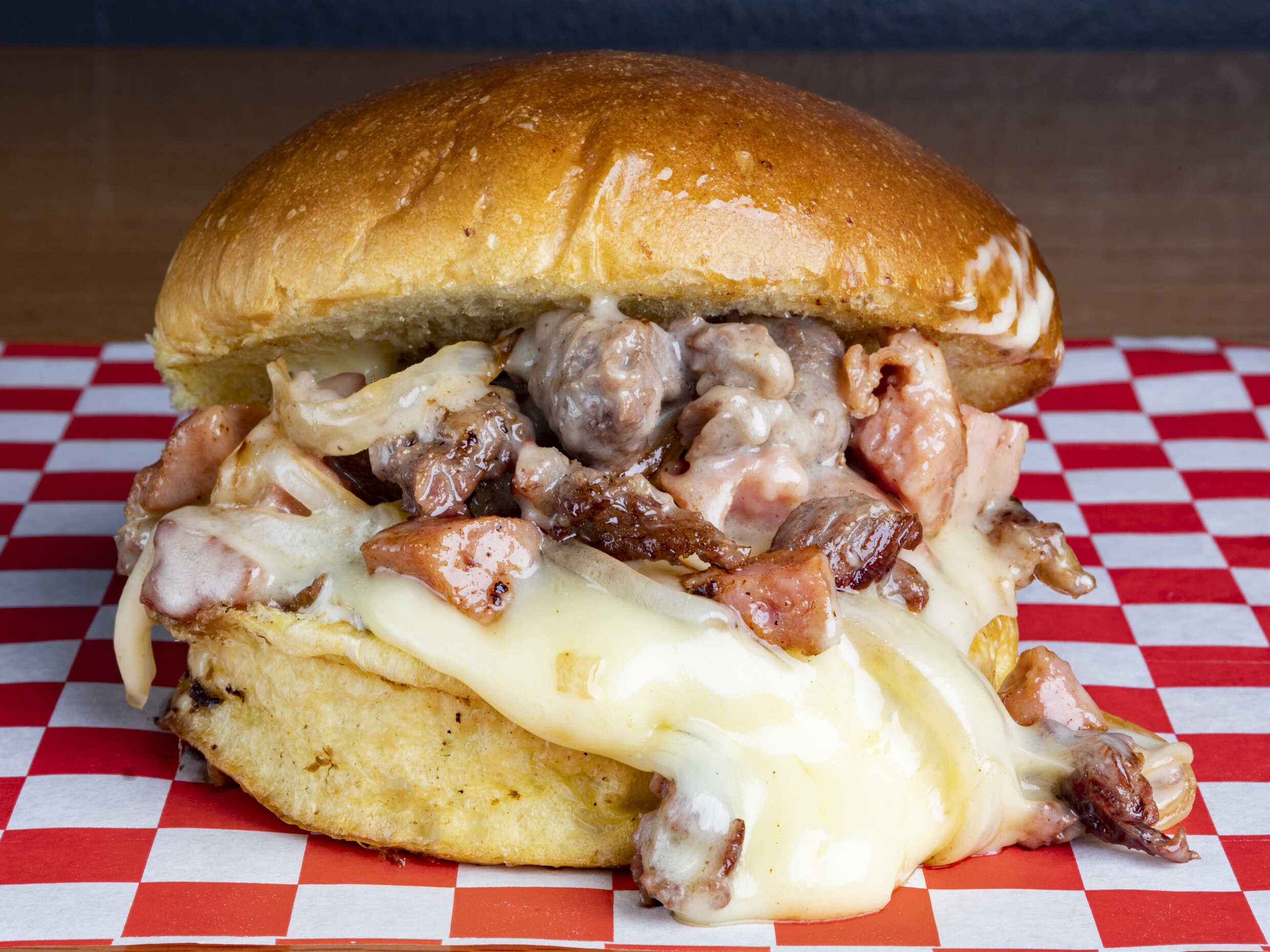 200 gr de carne sazonadada con el rub de la casa, queso, jamón, lechuga, tomate y nuestro nuevo aderezo de Philadelphia con un toque de chedar tocino y jalapeño.