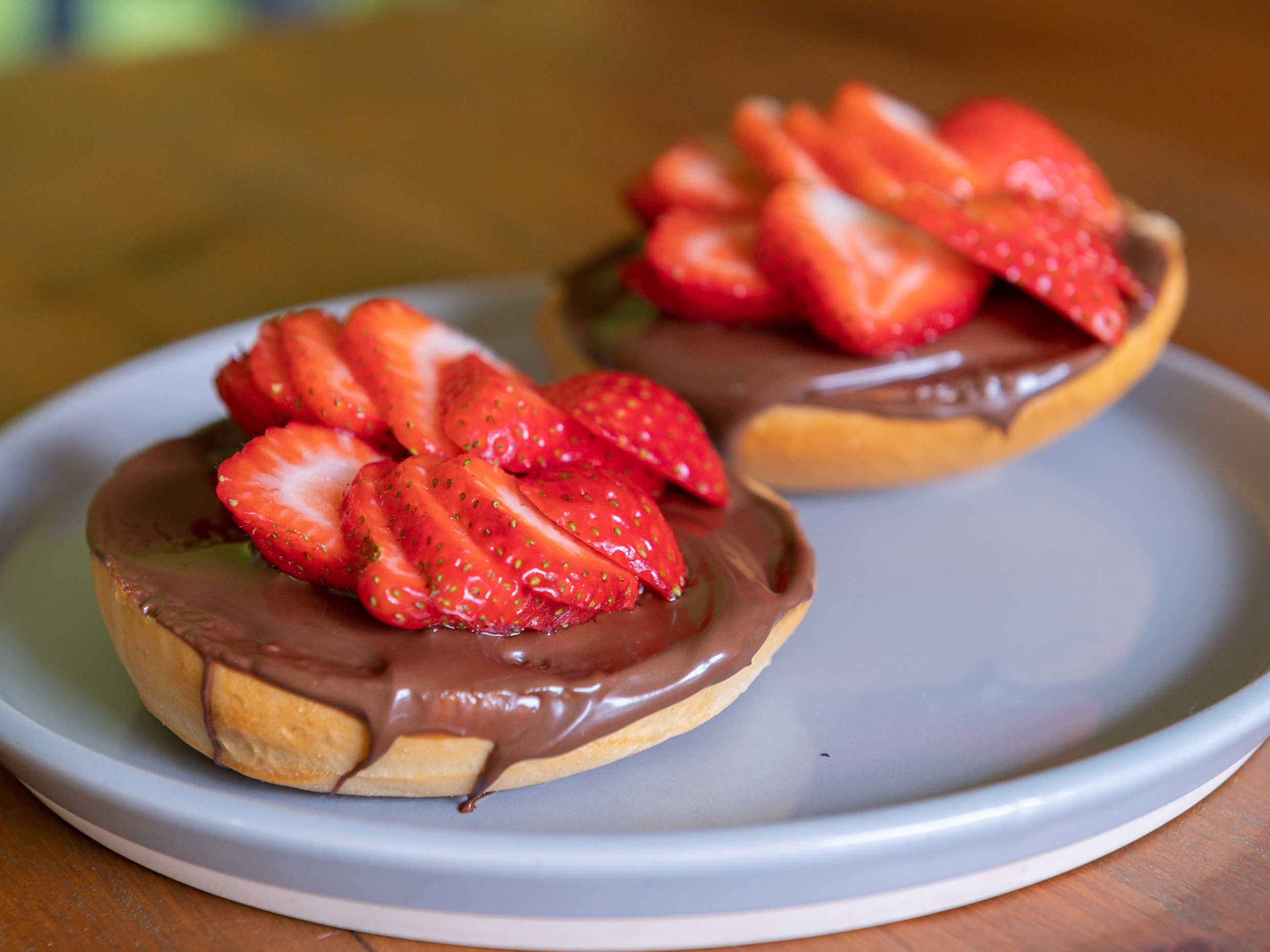 Tres piezas hechas de harina integral, con mermelada o miel, y mantequilla
