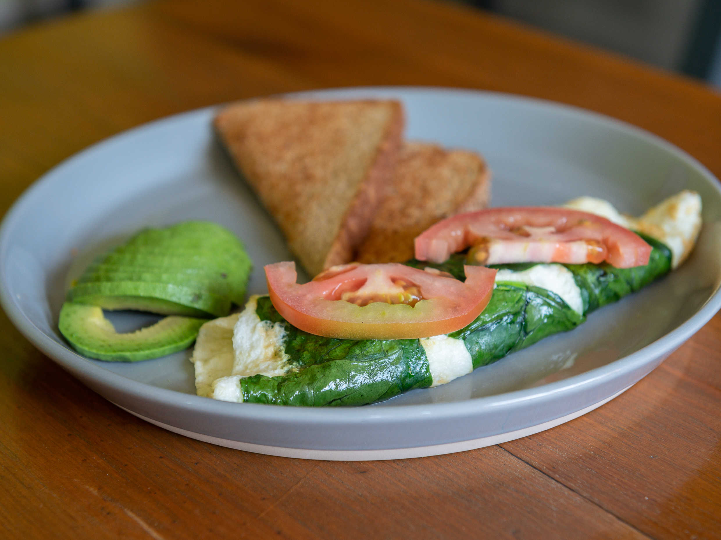 Pan claras de huevo espinaca lechuga tomate aguacate