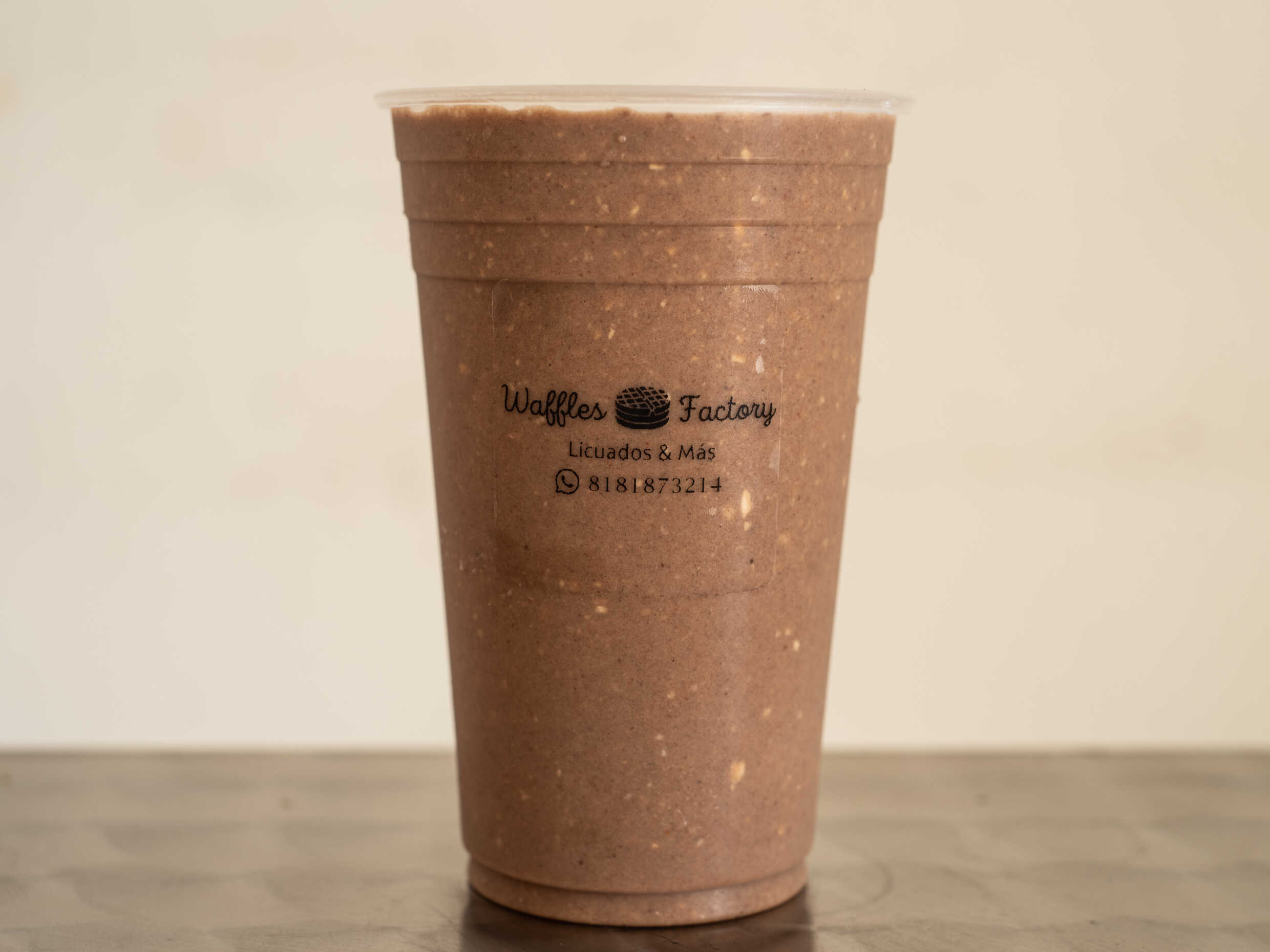 Leche a elegir, plátano, cacahuate, avena y cacao.
