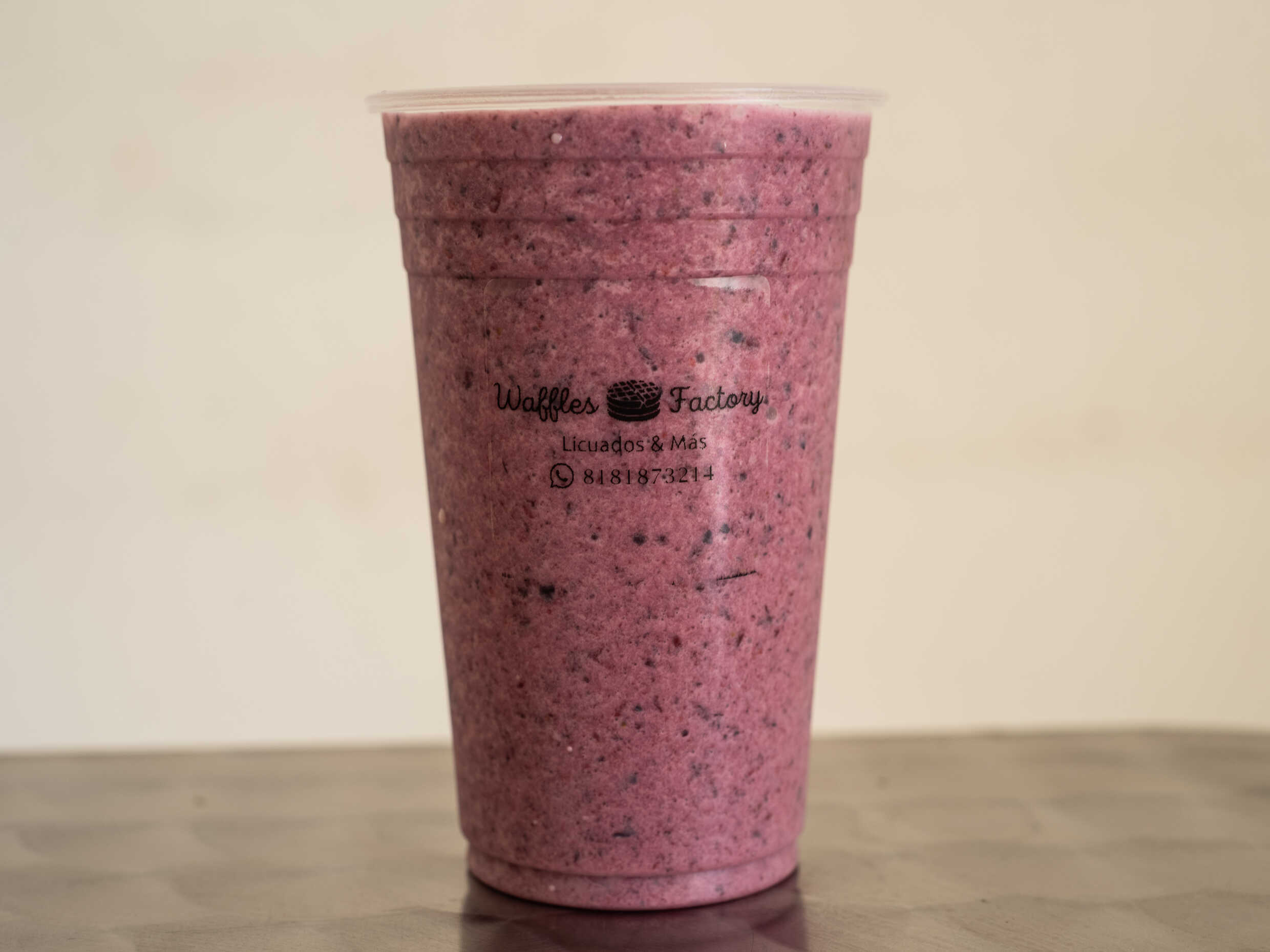 Leche a elegir, fresa, zarzamora, blueberries y azúcar.