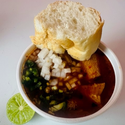 Rico Litro Menudo , incliuye pan , limon, chile y cebolla.