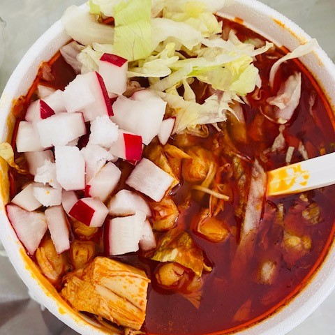 1 litro de Rico pozole mixto (puerco y pollo) acompañado de rabanos, lechuga, chile quebrado, limon y tostadas