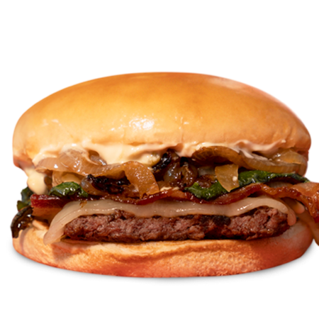 Carne 100 % de res con queso peper jack, jalapeño toreado, cebolla caramelizada, tiras de tocino y mayonesa con jalapeño.