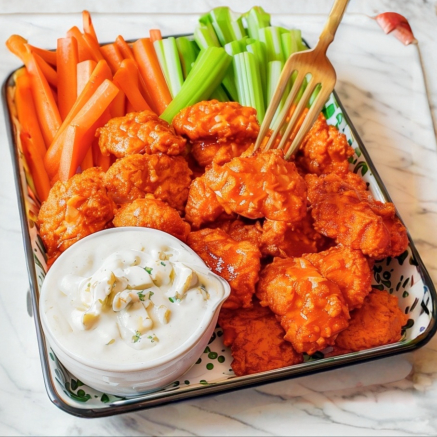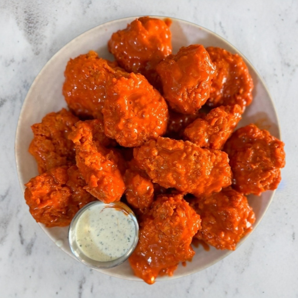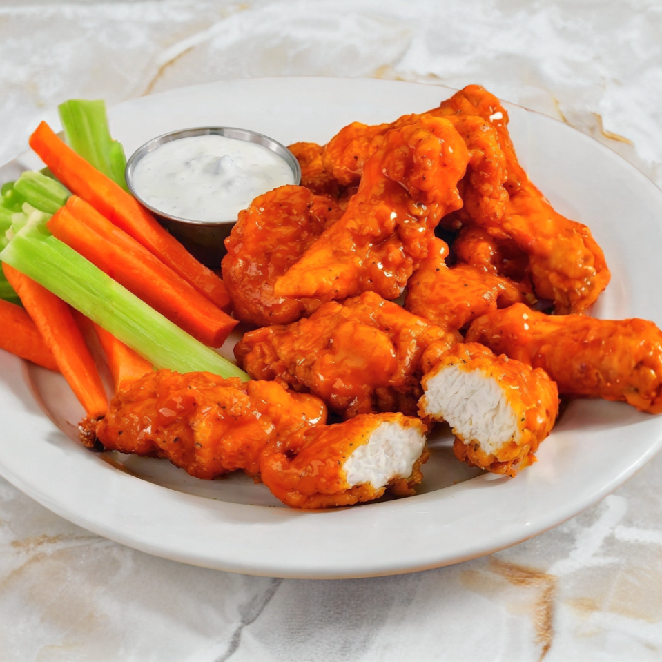 500 g De boneless recién hechos bañados al gusto y aderezo ranch.