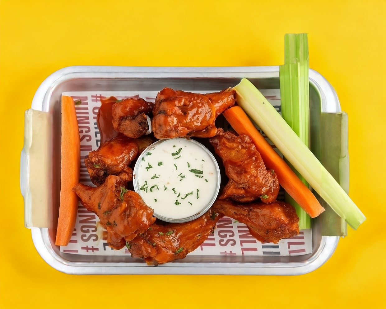 1200 gr de Alitas, Elige dos salsas y 3 aderezos para acompañar.