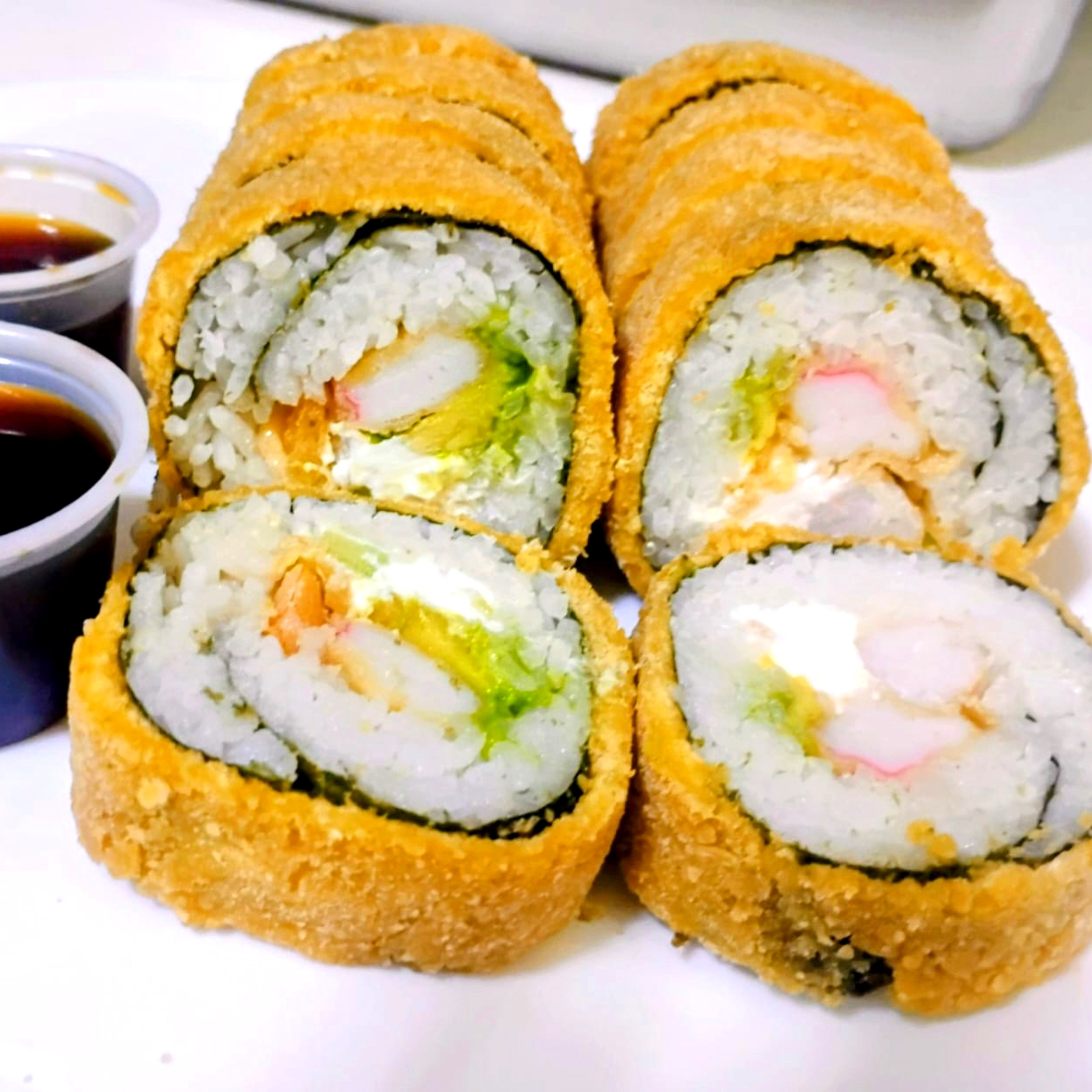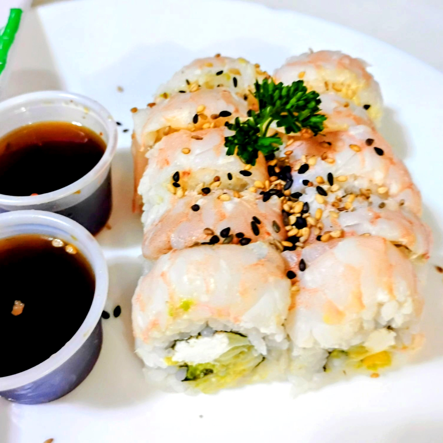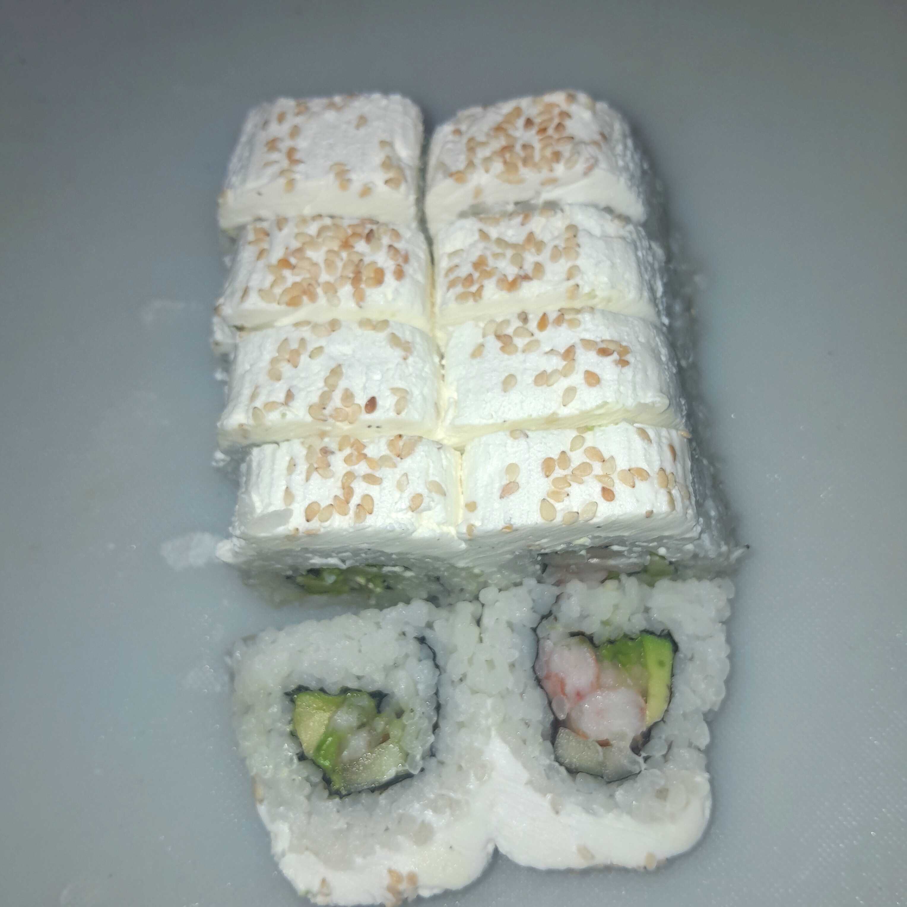 arroz, alga marina,queso philadelphia,aguacate y marisco a elegir
