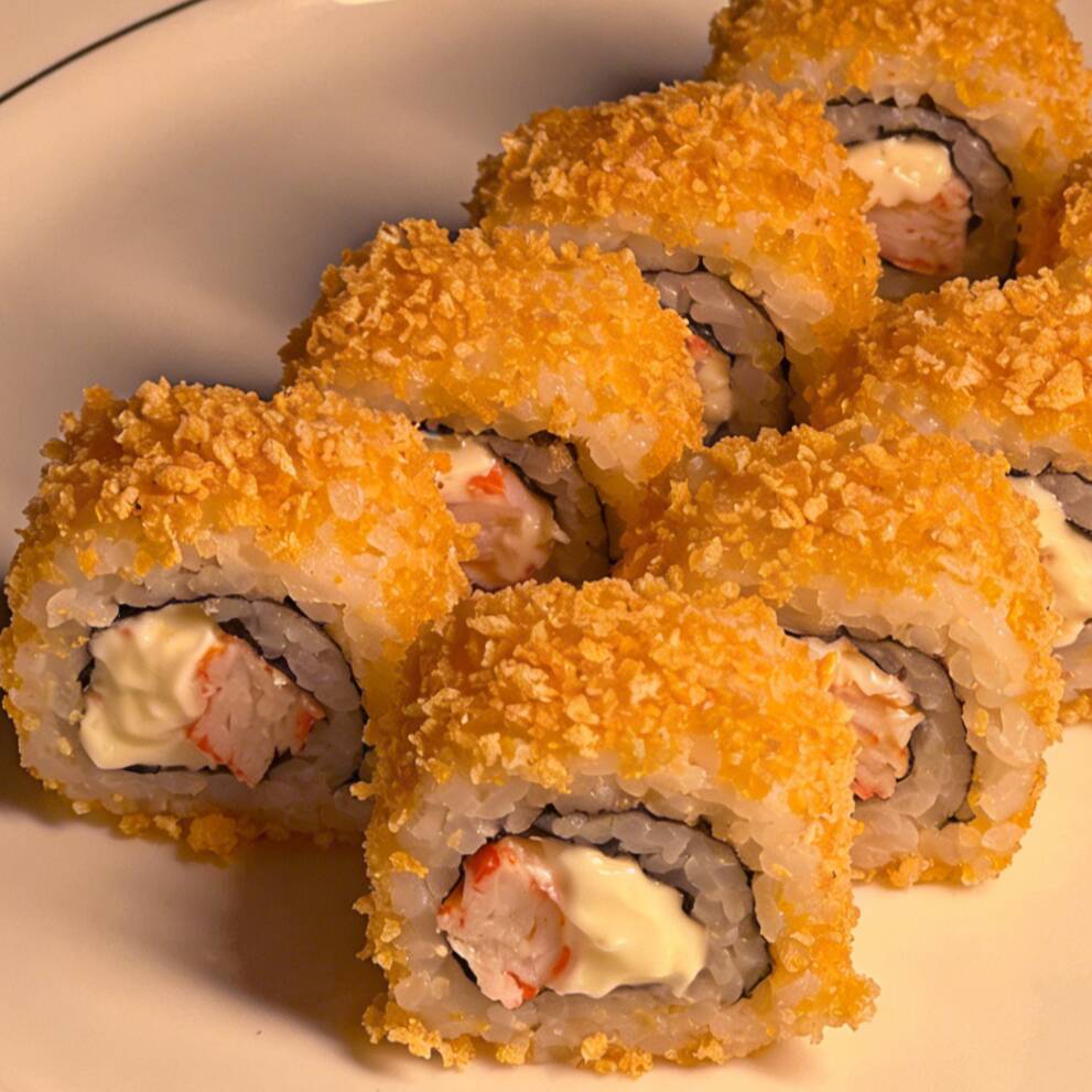 Sushi al estilo chino, incluye un rollo de surimi cortado en 8 piezas, relleno de queso crema y palitos de cangrejo. El arroz está preparado con nuestra salsa especial, ofreciendo un sabor delicioso y presentación atractiva. Se sirve acompañado de dos porciones de salsa de soya.
