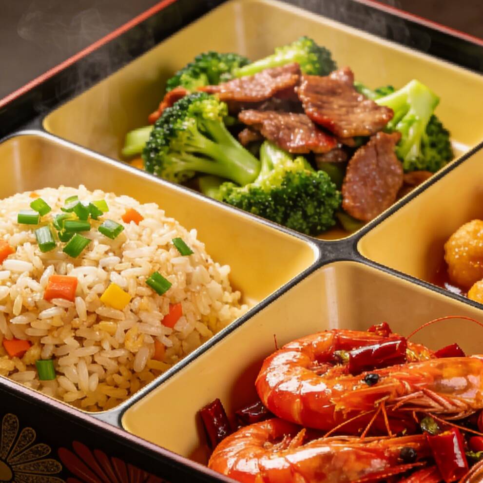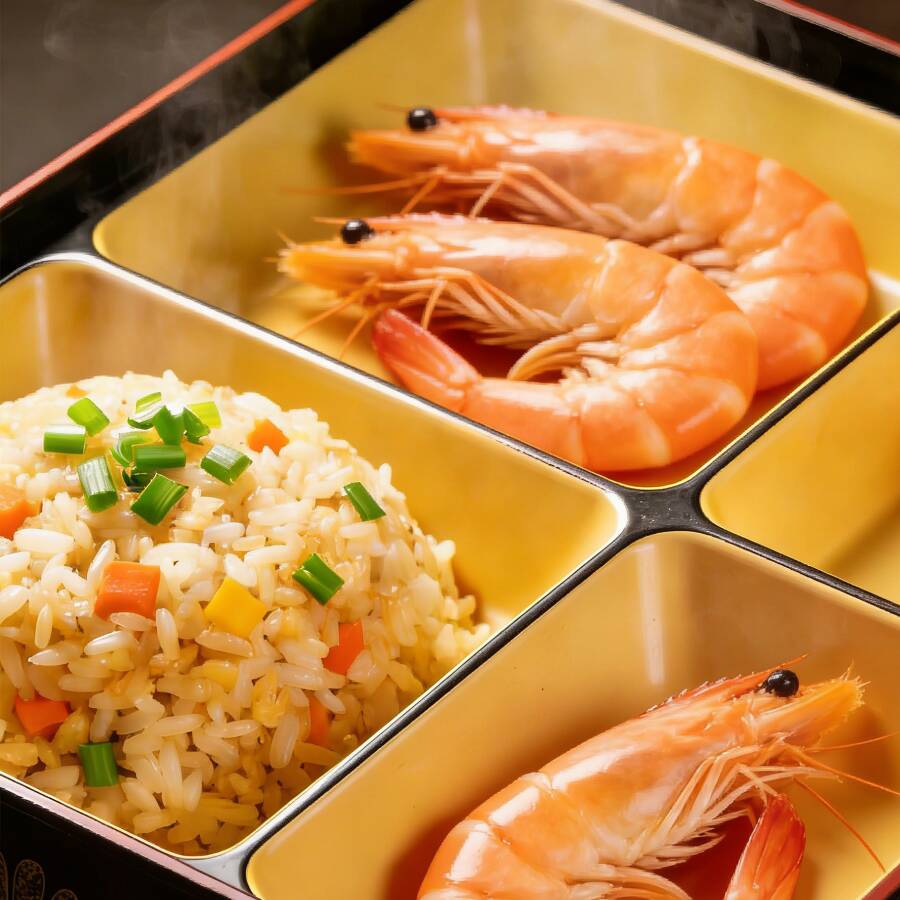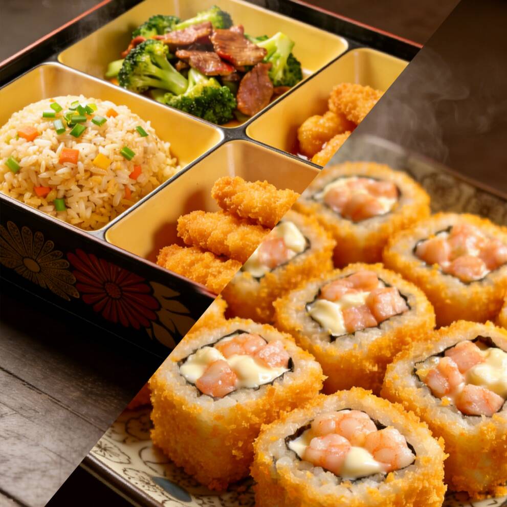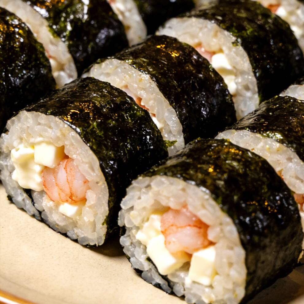 Sushi al estilo chino, incluye un rollo de camarón cortado en 8 piezas, relleno de camarón y queso crema. El arroz está preparado con nuestra salsa especial, ofreciendo un sabor delicioso y presentación atractiva. Se sirve acompañado de dos porciones de salsa de soya.