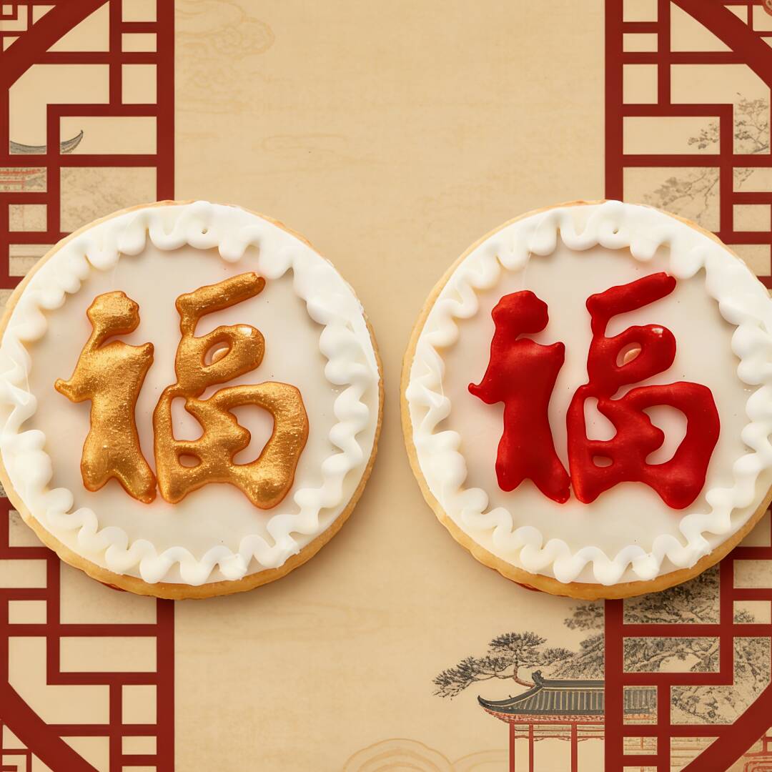 Galletas tradicionales chinas con el carácter “福”, símbolo de buenos deseos y prosperidad. Un pequeño detalle especial preparado para el Año Nuevo Chino, para desearles un nuevo comienzo lleno de esperanza y buena fortuna.