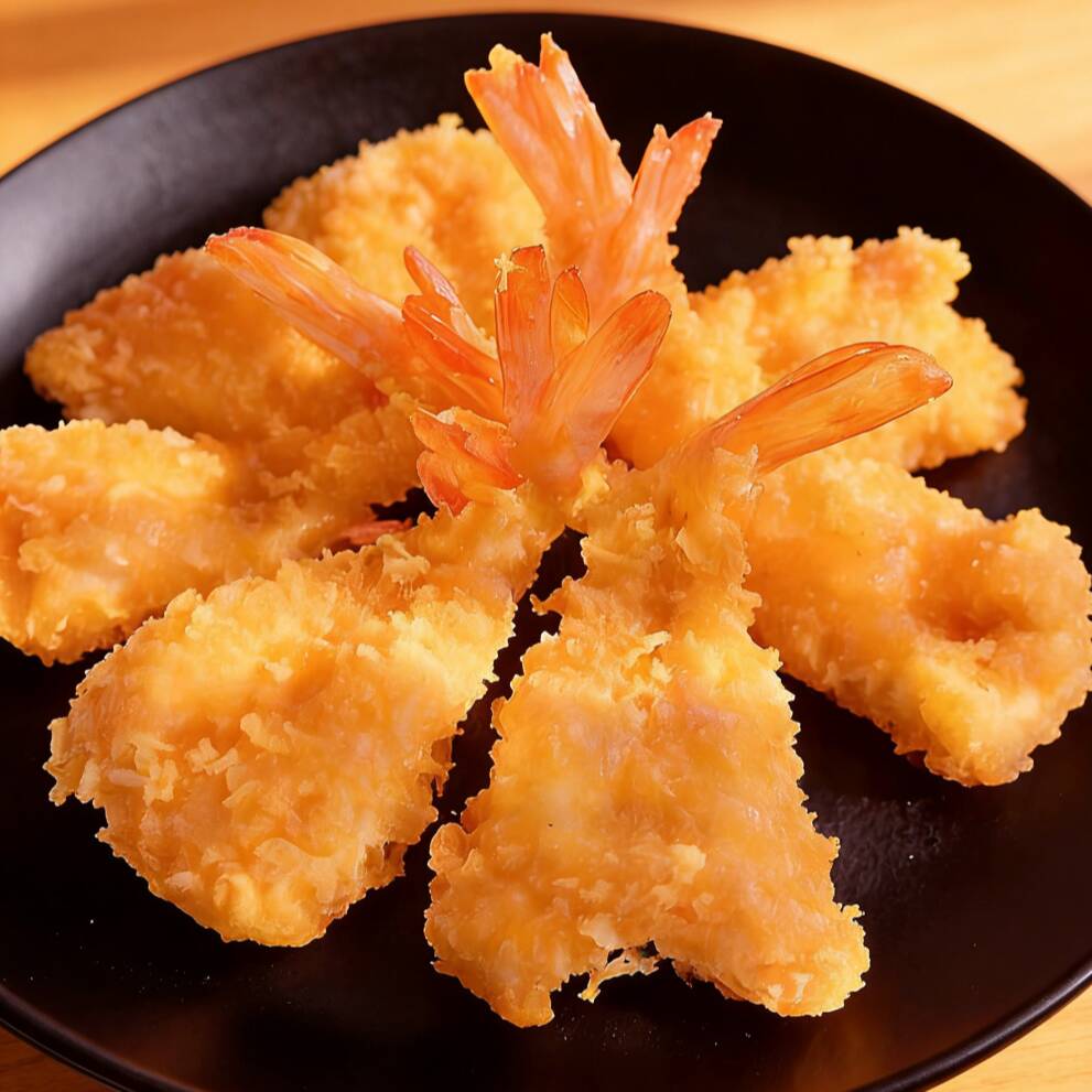 Camarón al estilo chino, incluye una sola pieza de camarón, abierto tipo mariposa, empanizado con pan rallado y frito hasta quedar crujiente y ligeramente tierno. Se sirve acompañado de salsa picante y aceite de chile.