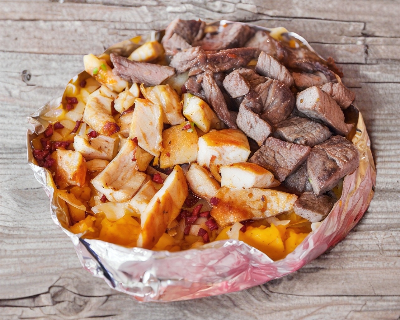 Papa Mixta con Carne y Trompo