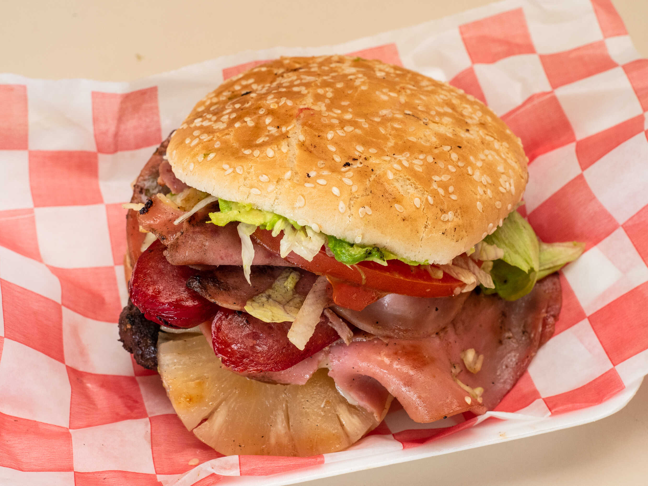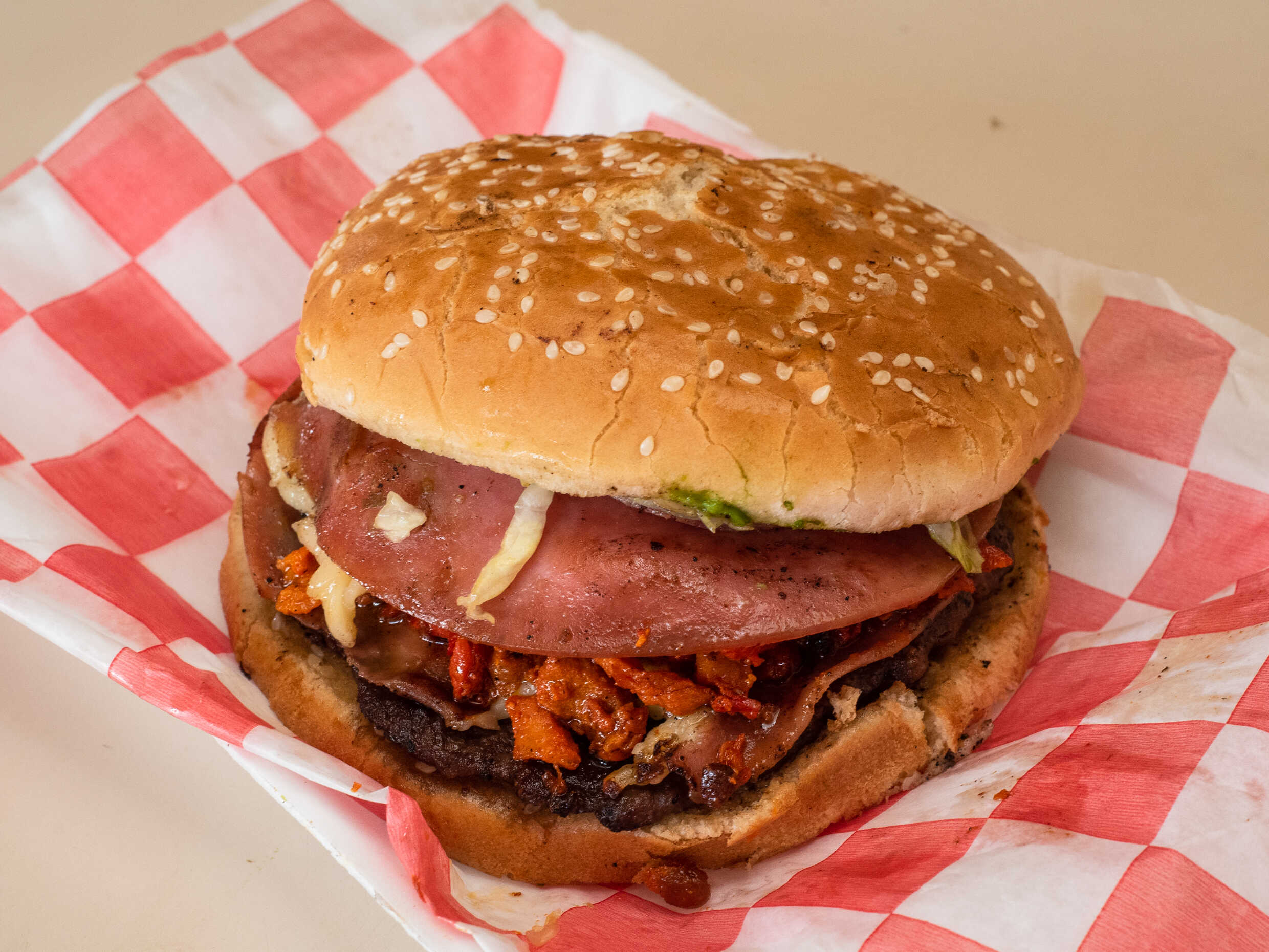 Lleva carne de res, salchicha roja de asar, queso asadero, jamón, salami, aguacate, tomate, lechuga, mayonesa, mostaza, sobre de cátsup y sobre de chiles.