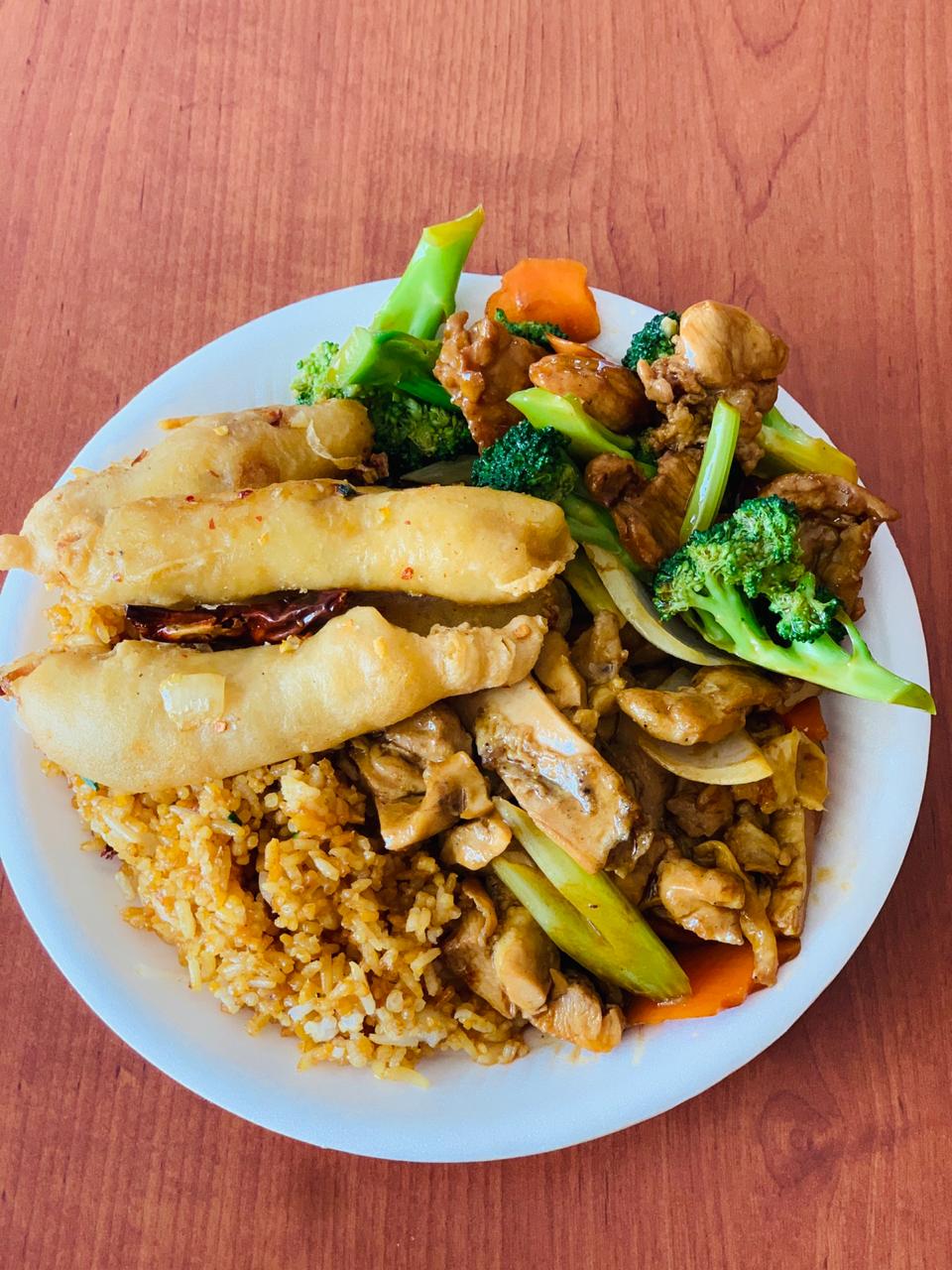 Platillos incluyen Arroz o Pasta.