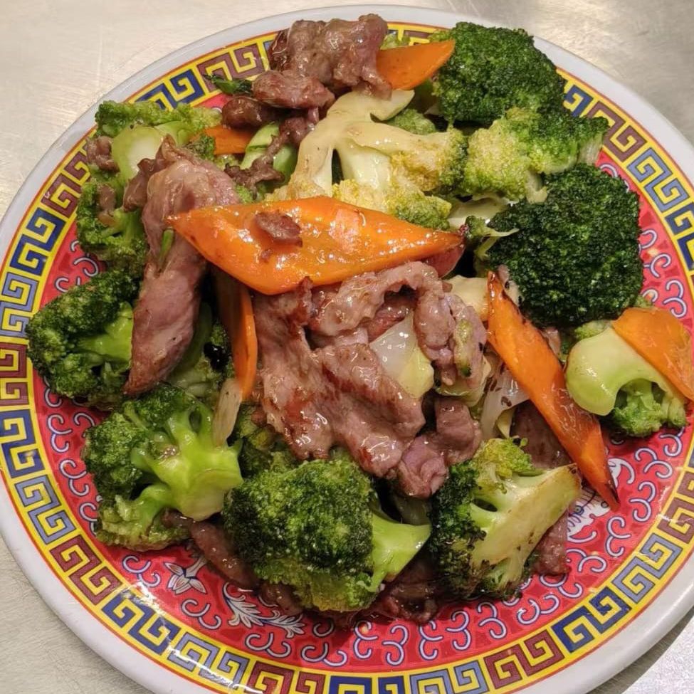 Brócoli con res y zanahoria más un guiso de lomo de cerdo