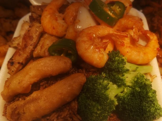 Escoge 2 guisos con camarón y arroz o pasta.