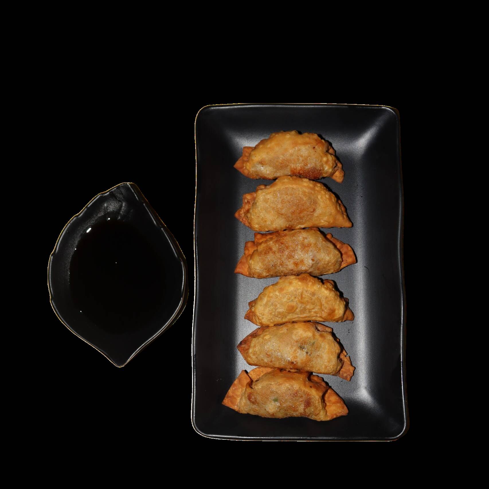 Son 6 pzs rellenas de carne de res y cebollín,acompañada con salsa de soya