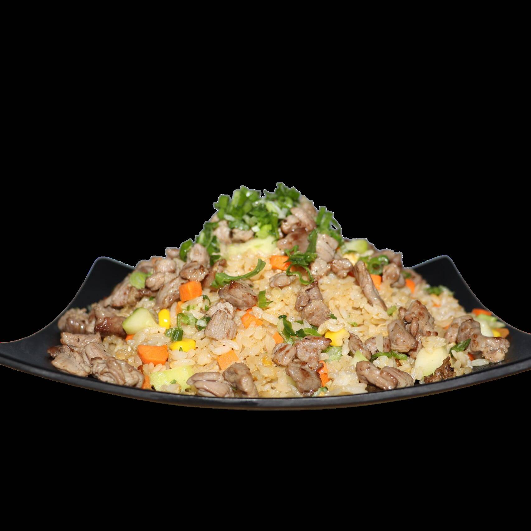 Pechuga de pollo y lomo de cerdo, alga, huevo, col, elote y cebollín.