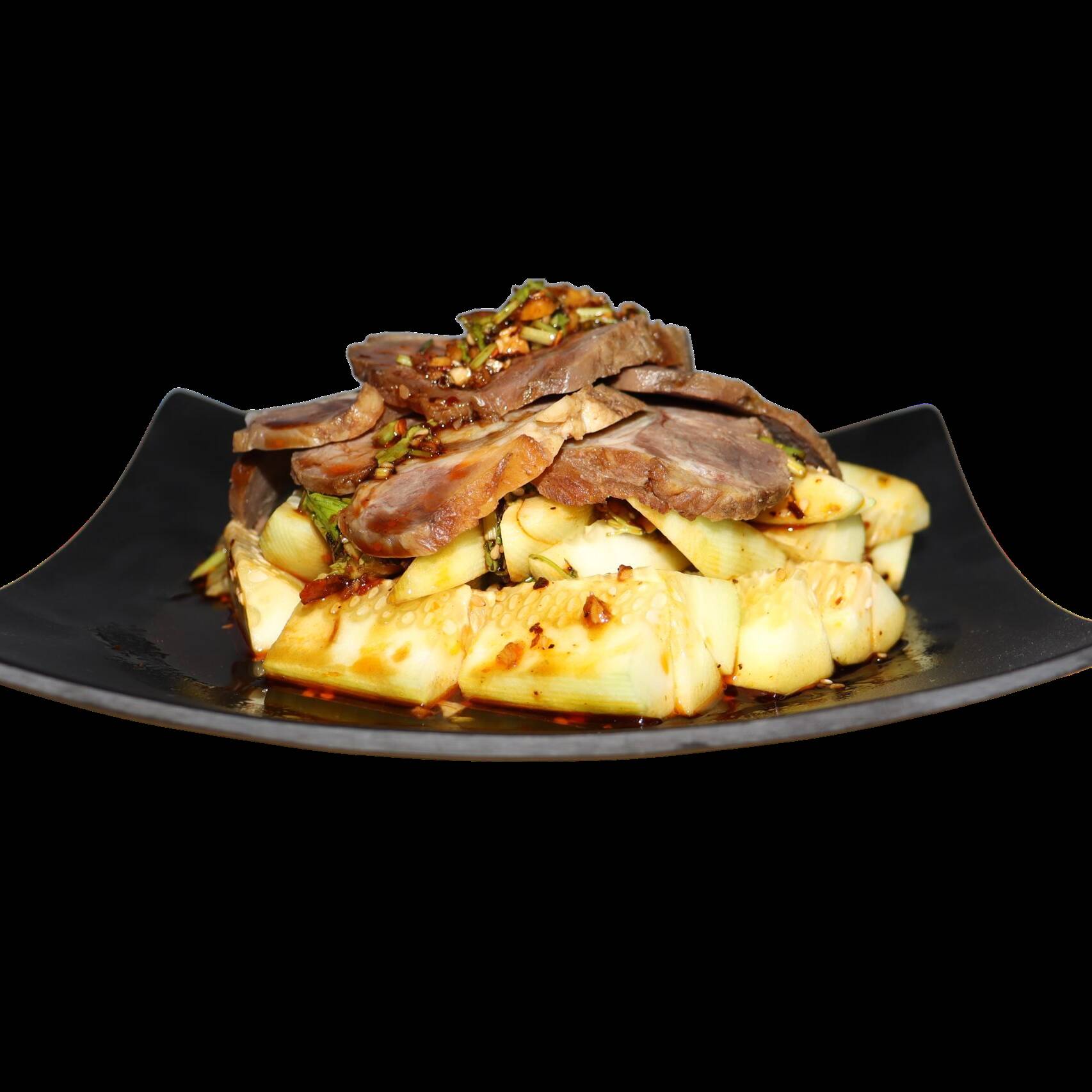 Carne de res,pepino,ajo,cilantro,cebollin,bañado en salsa especial picante