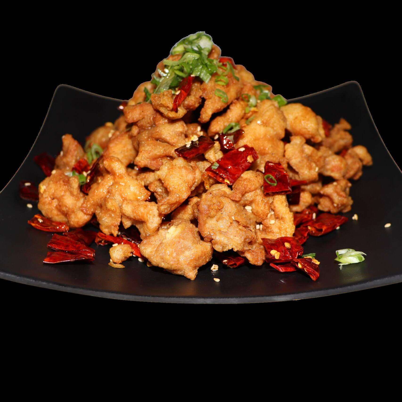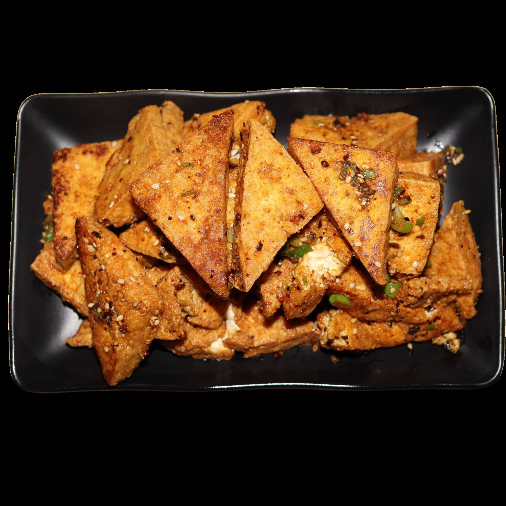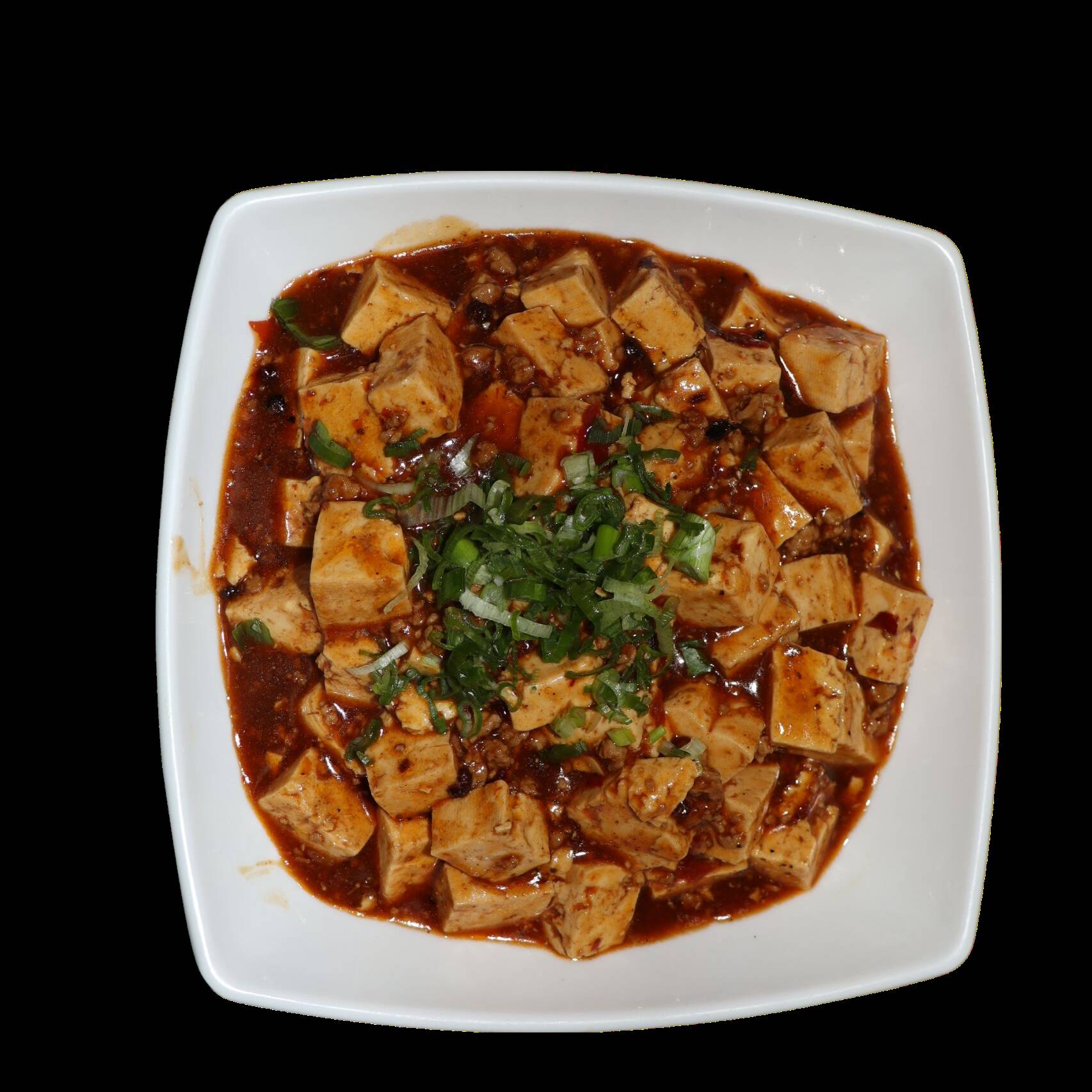 Tofu,carne de puerco picada,cebollín y salsa picante