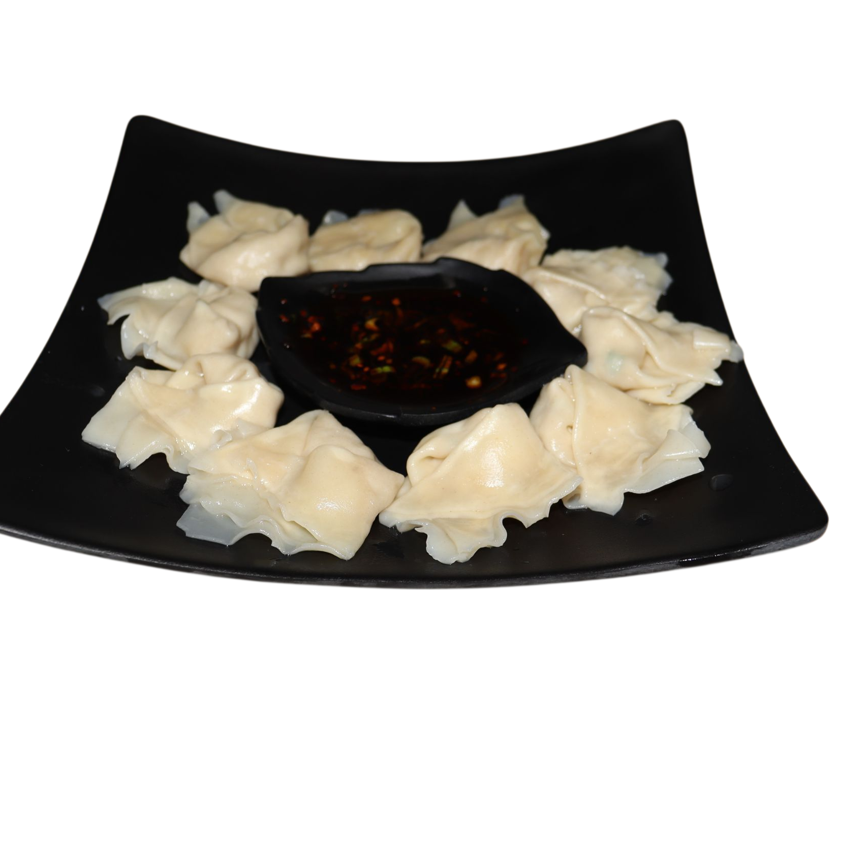 10 pzs rellenas de carne de puerco y cebollín,acompañada con salsa de soya picante