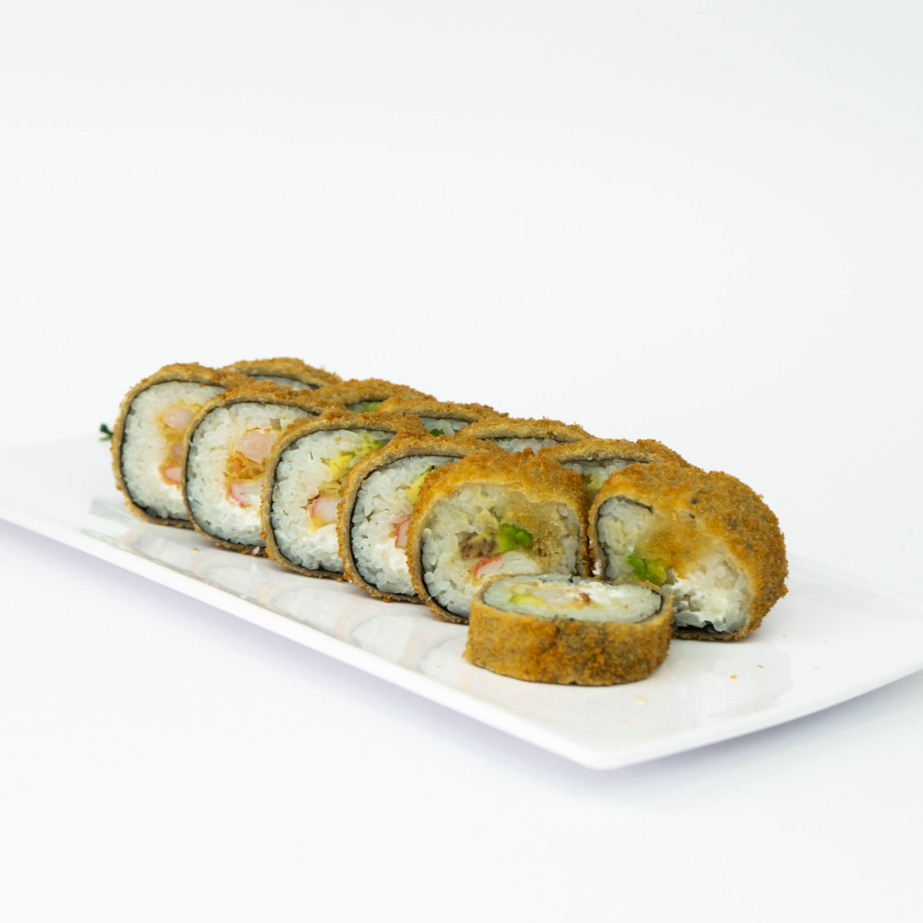 Rollo Empanizado con Queso Philadelphia por fuera, Aguacate y Tampico por Dentro