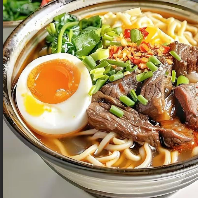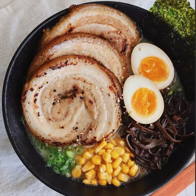 Ramen Tocineta Chile, huevo, elote y cebollín