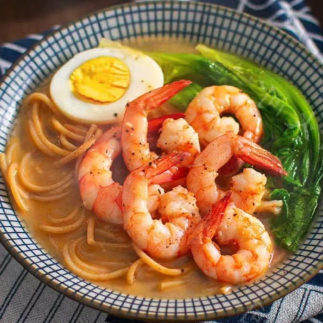Ramen de Camarón con picante, chile, huevo y lechuga