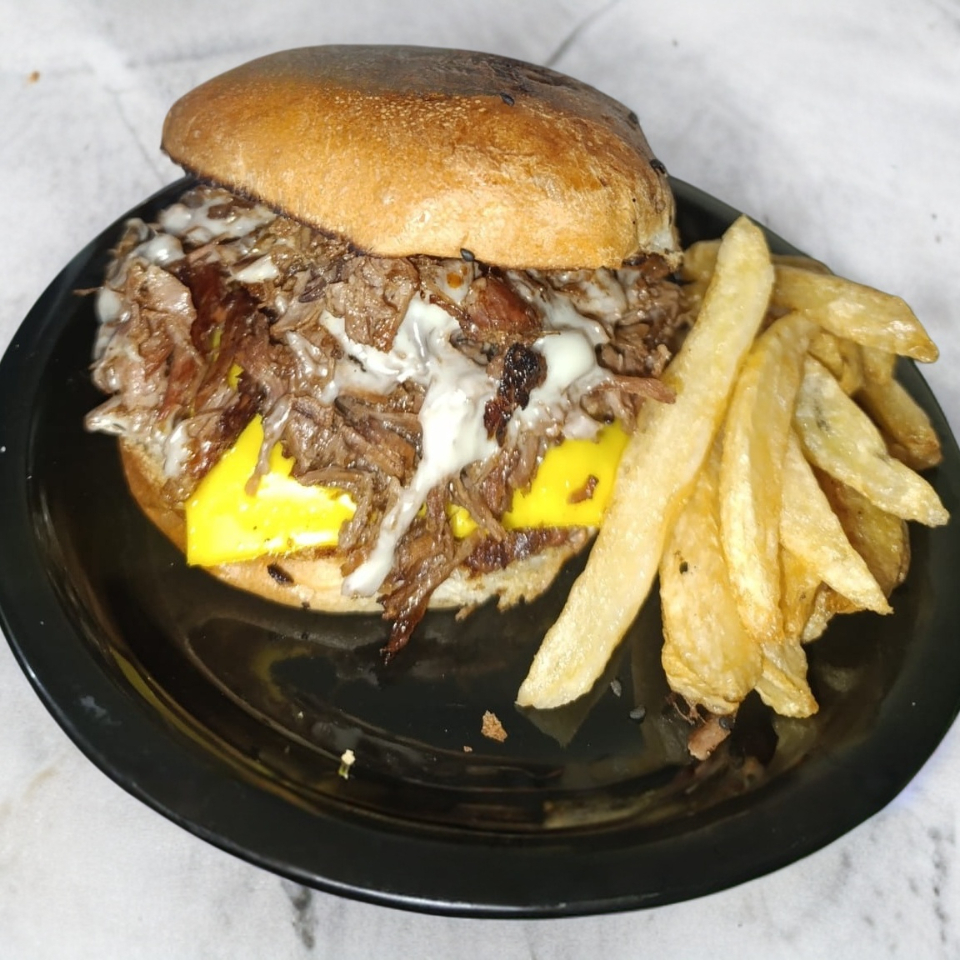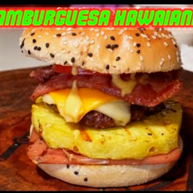 Carne de res, queso manchego, mermelada de tocino, piña, jitomate, lechuga, cebolla y BBQ.