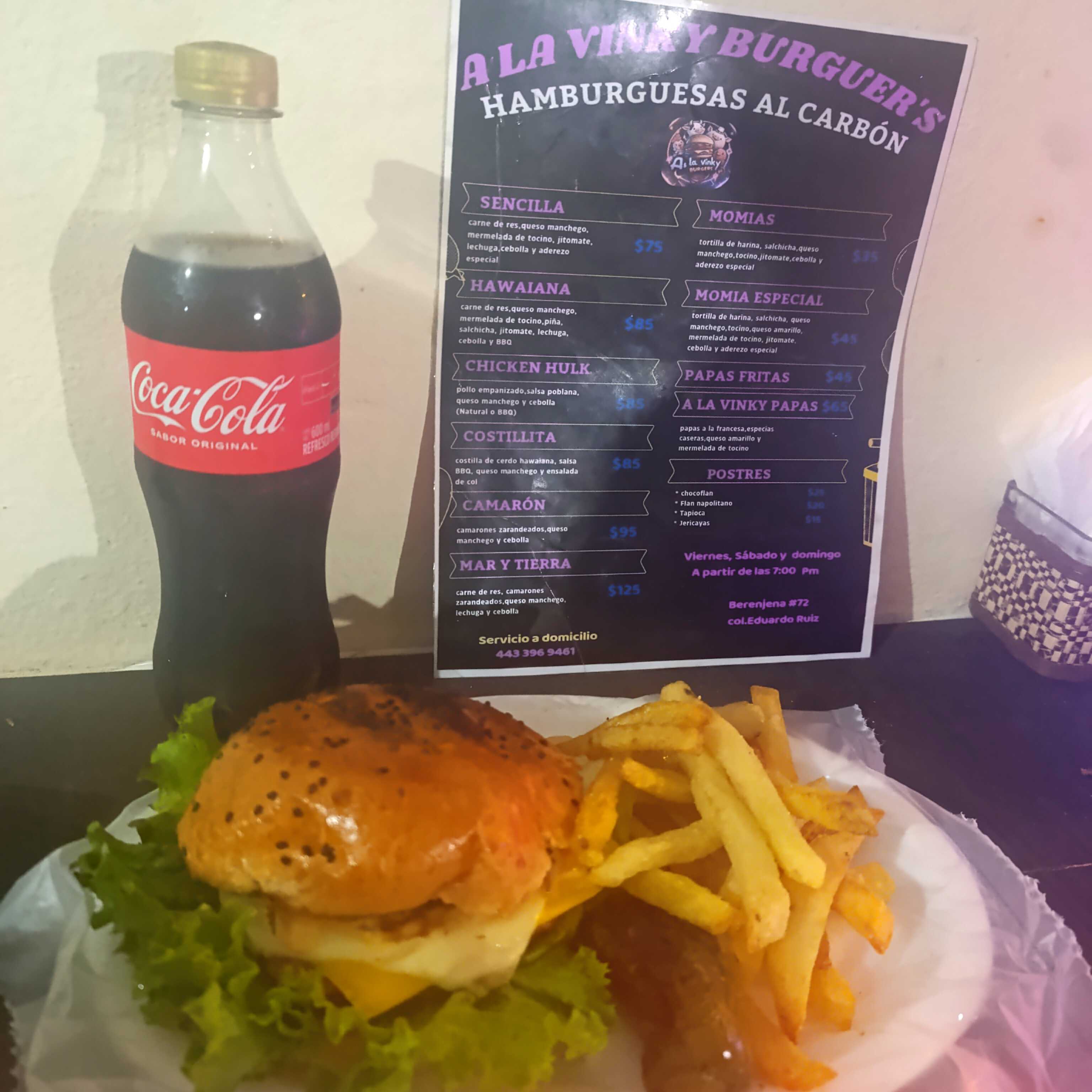 Hamburguesa Sencilla*1 + Papas a la Francesa*1 + Coca de 600 Ml*1