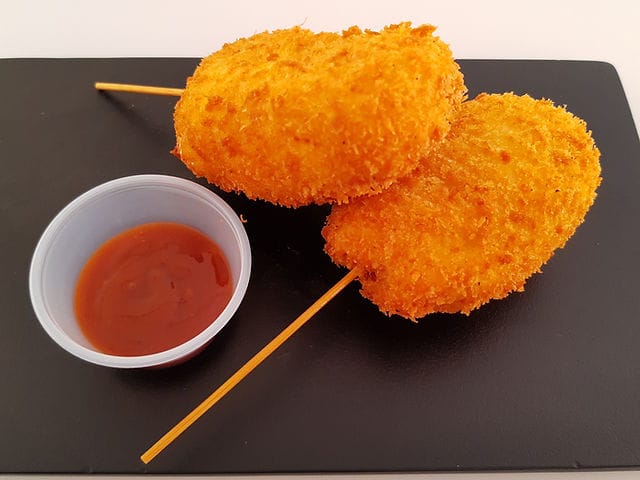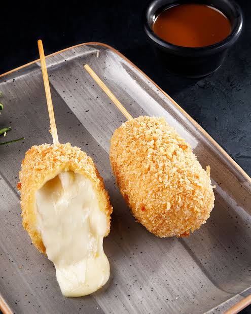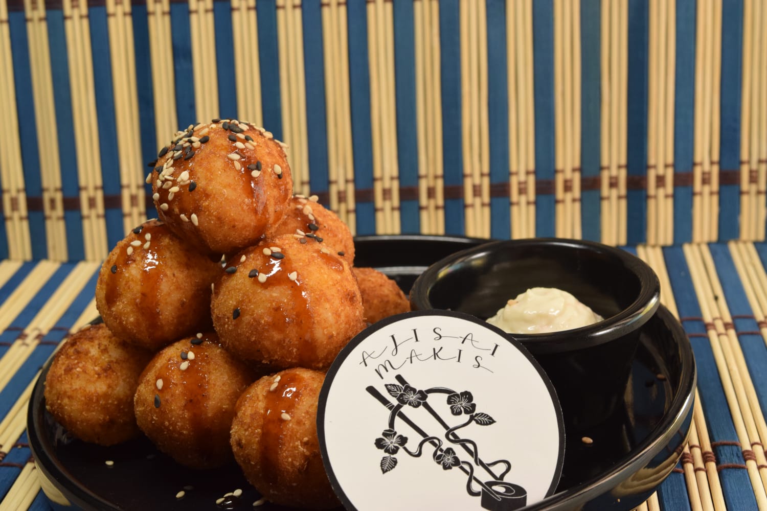 Orden de 10 bolitas de arroz rellenas de pollo y Philadelphia empanizadas.