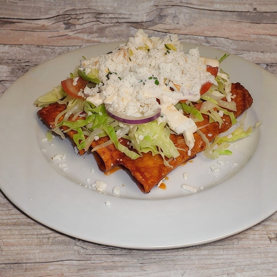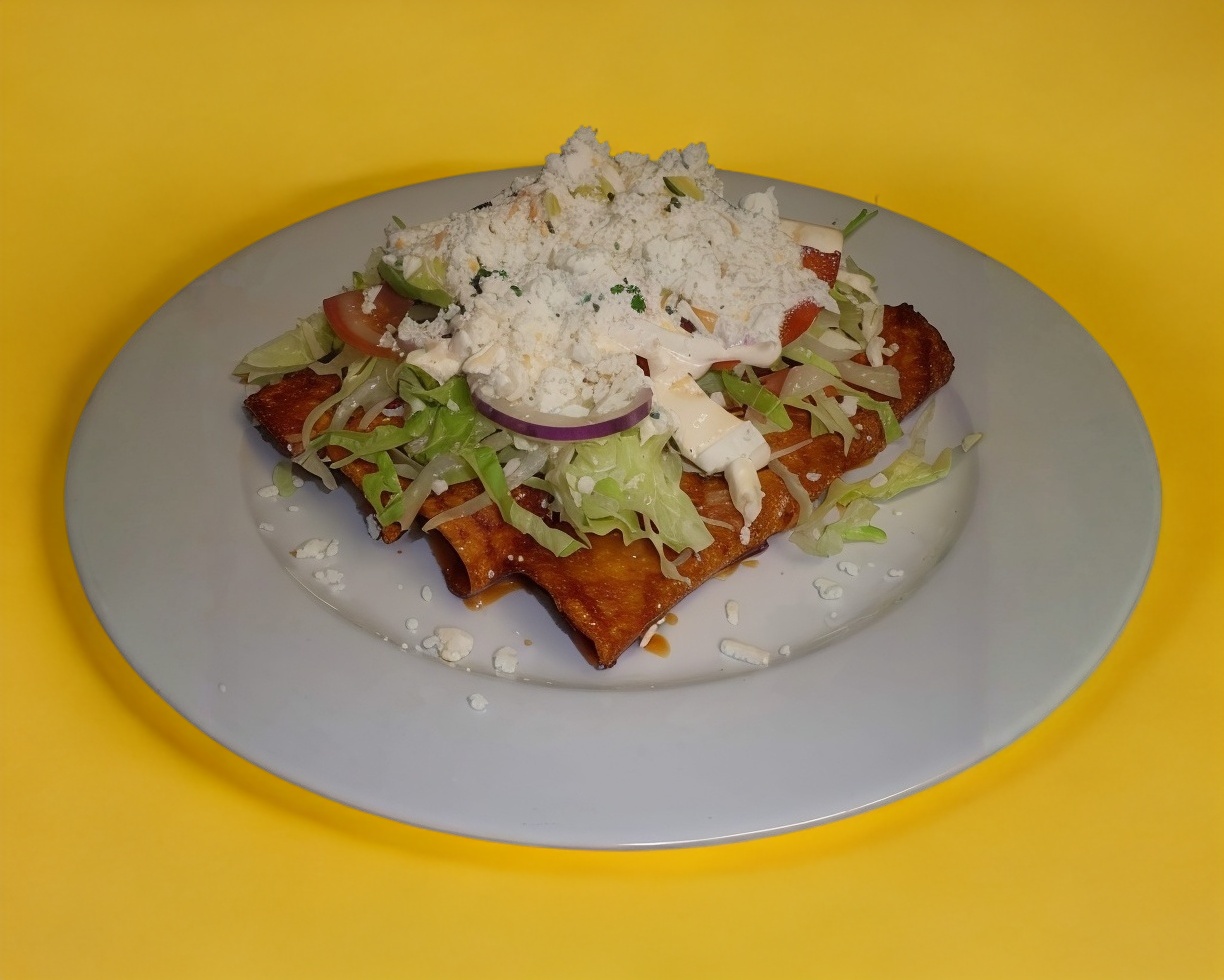 Enchiladas sencillas ,lechuga ,crema ,salsa