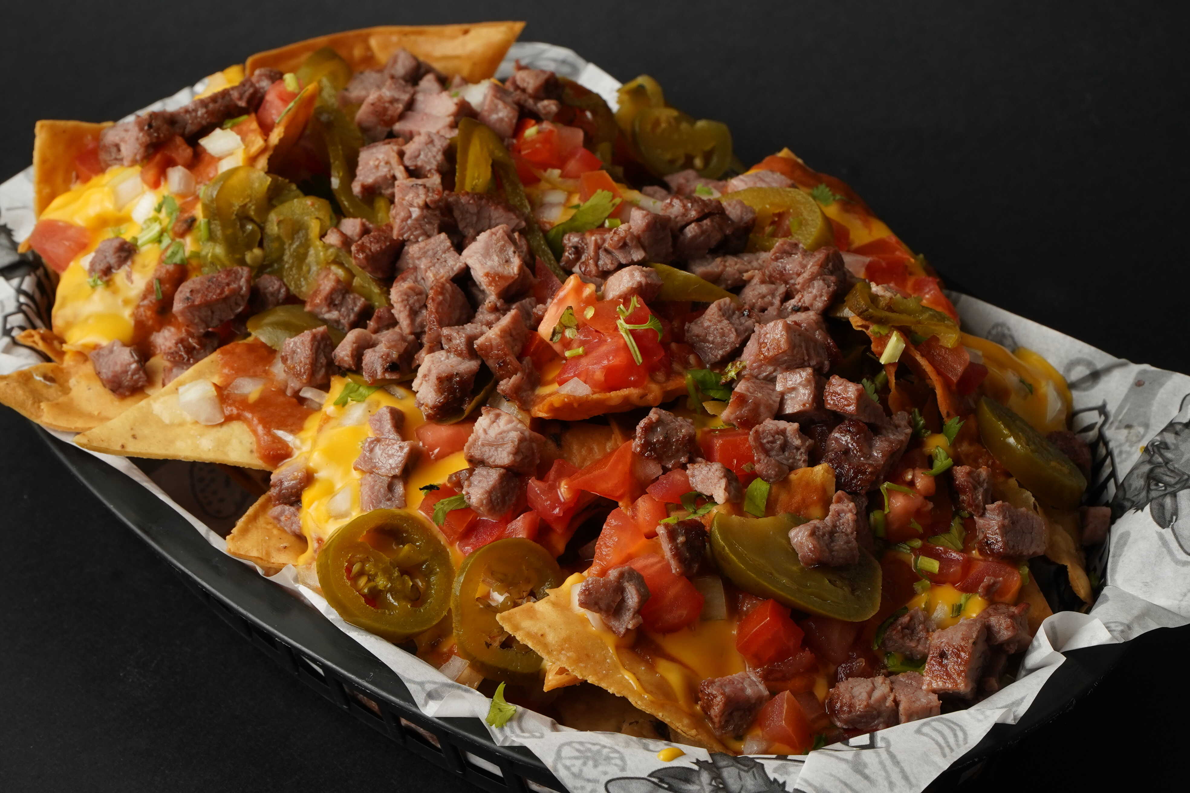Preparadas con tocino, cebolla asada, queso de nachos y jalapeños picados